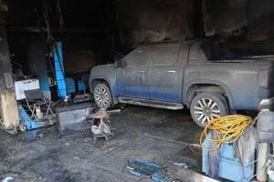 Požiar dvojgaráže v Porube